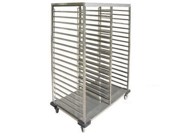 Loại nhỏ 36 khe cài khay, có bánh xe, khay hứng nước. Chuyên dùng cho việc thu khay cơm tại khách sạn, nhà hàng, nhà ăn công nhân, tập thể …